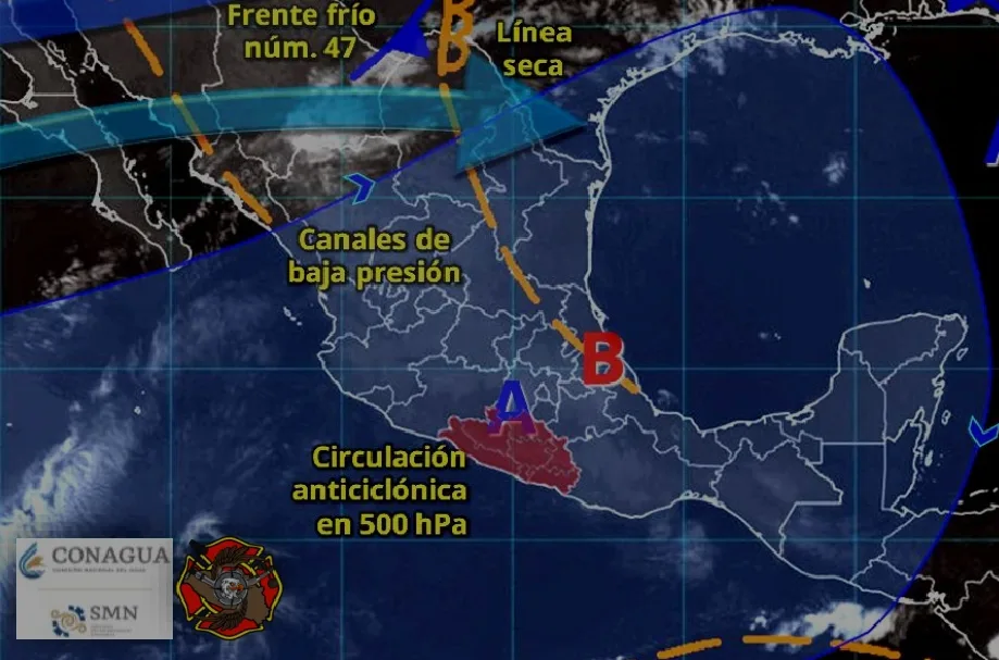 En su reporte meteorológico, la dependencia estatal indicó que, esto se debe a que una circulación anticiclónica en 5.5 kilómetros de altitud que se ubica al norte de Guerrero mantendrá el día mayormente soleado.