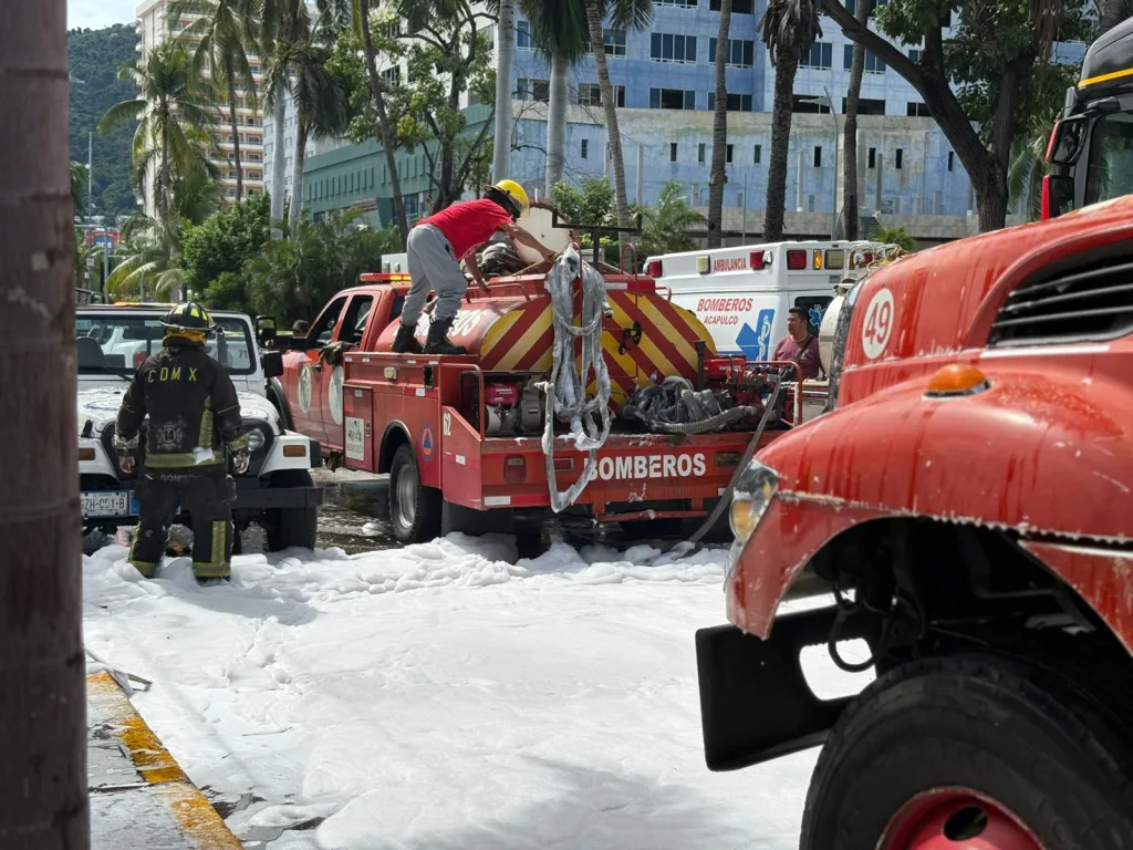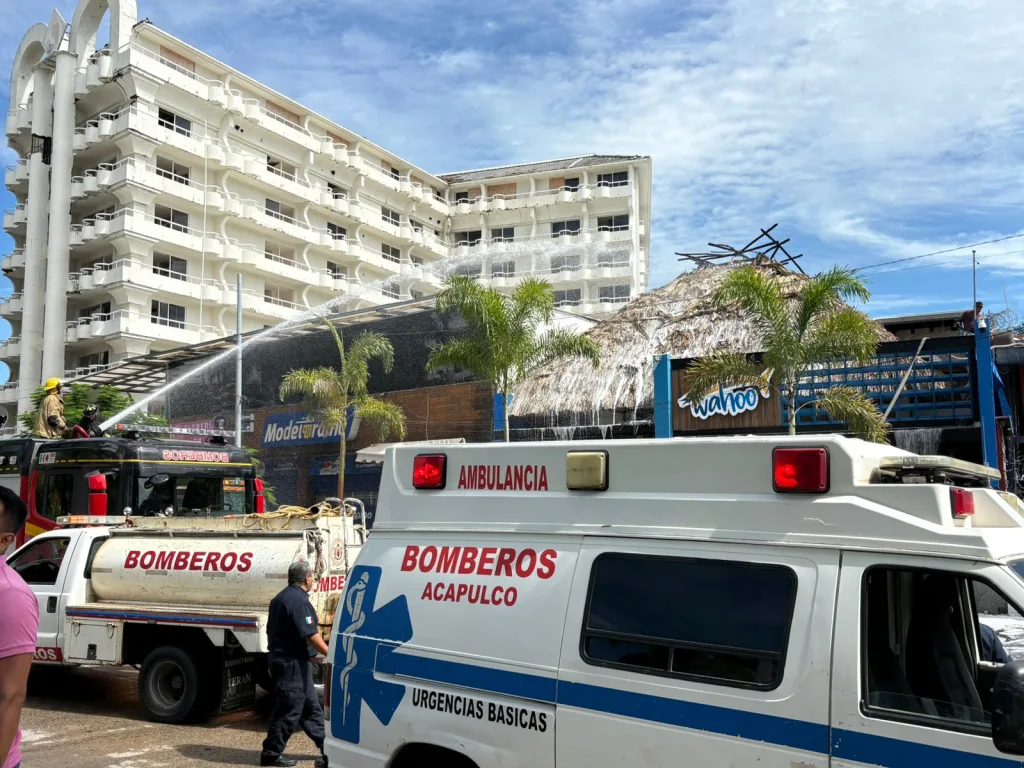 El departamento de Bomberos del Gobierno Municipal de Acapulco sofocó un incendio en la palapa del restaurante “Wahoo”, ubicado sobre la Costera Miguel Alemán, evitando que las llamas afectaran otras áreas del establecimiento.
