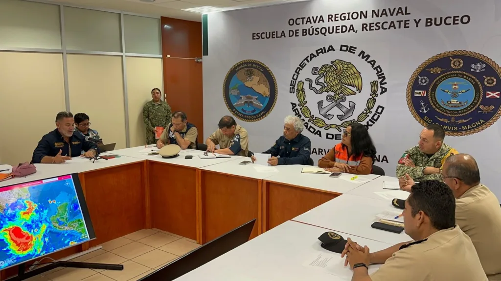 En la reunión que se llevó a cabo en las instalaciones de la Octava Región Naval de Acapulco, se acordó establecer una ruta de trabajo coordinada, como medida preventiva para contemplar y prever cualquier circunstancia de riesgo, con el propósito de aplicar los protocolos preventivos correspondientes para salvaguardar la integridad física y el patrimonio de la población.
