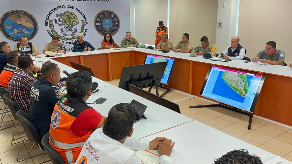 El secretario de Gestión Integral de Riesgos y Protección Civil, Roberto Arroyo Matus, la mañana de este jueves encabezó una reunión con representantes de los tres órdenes de gobierno, para establecer y coordinar una estrategia de trabajo, con el fin de fortalecer acciones preventivas y una atención eficaz a la ciudadanía, derivado de las lluvias pronosticadas para las próximas horas por el paso de la Tormenta Tropical “Raymond” frente a las costas de Guerrero.