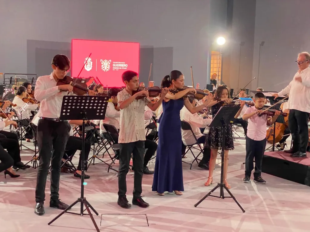 En el programa también se mostró el talento en la composición musical, al interpretar en estreno mundial la Obertura n°1 “Romance”, escrita por el joven acapulqueño, Oliver Martínez Ramos. En medio de una gran ovación, el concierto finalizó con la participación de más de 140 músicos en el escenario, maestras y maestros integrantes de la Orquesta junto a sus estudiantes quienes, bajo la batuta del Maestro Bartholomeus Henri Van de Velde, ofrecieron un gran cierre al interpretar magistralmente los temas regionales “Atoyac” y “Por los Caminos del Sur”.