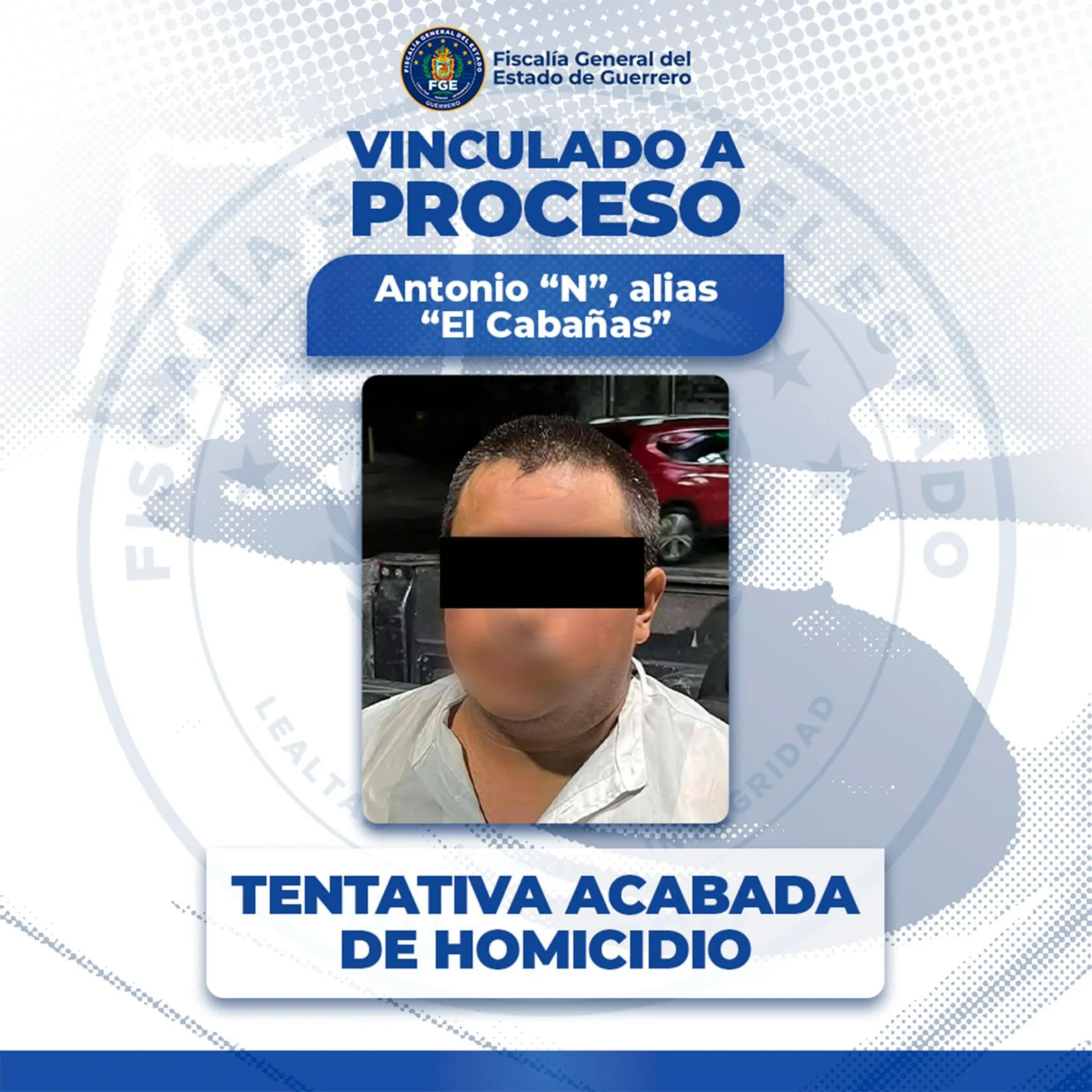 La Fiscalía General del Estado de Guerrero obtuvo la vinculación a proceso de Antonio “N”, alias “El Cabañas”, por su probable responsabilidad en el delito de tentativa acabada de homicidio, en agravio de cuatro elementos de seguridad federal, por hechos ocurridos en el municipio de Acapulco de Juárez, Guerrero.